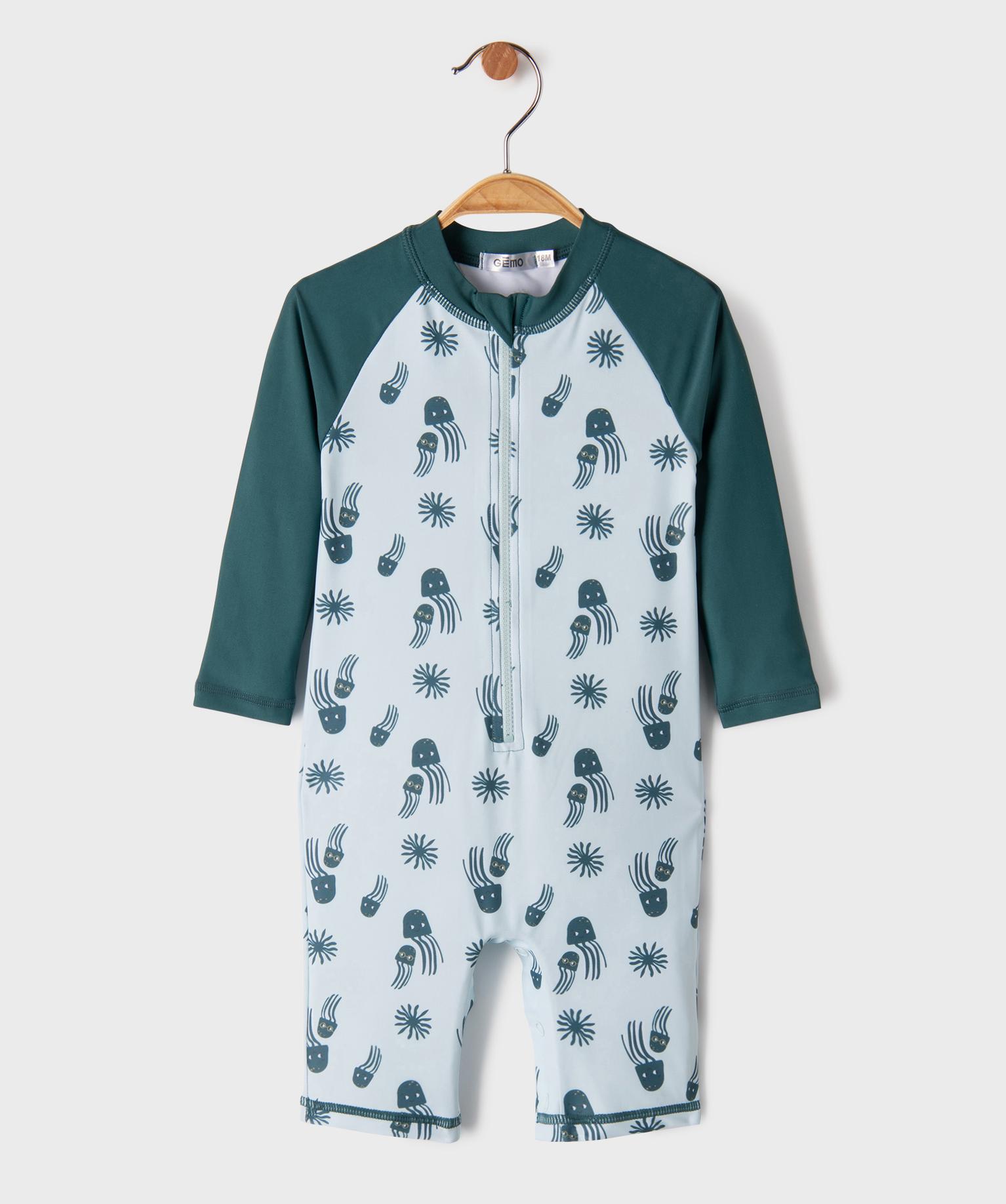 Cet été, offrez à votre enfant confort et protection avec cette adorable combinaison maillot de bain pour bébé garçon. Idéale pour limiter le contact direct avec le sable et le soleil, elle accompagne les tout-petits dans toutes leurs aventures estivales. Un modèle bicolore orné d’animaux marins, doté d’une fermeture zippé sur l’avant et de boutons pression à l’entrejambe. Une combinaison de plage facile à enfiler confectionnée dans une matière extensible offrant aux tout-petits une totale liberté de mouvement.