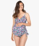 Cet été, craquez pour ce maillot de bain de grossesse ultra féminin ! Sa forme tankini (slip de bain + débardeur) flatte vos formes épanouies tout en vous offrant un maximum de confort. Le haut de maillot de bain affiche un joli décolleté avec ses bonnets paddés et son empiècement croisé à l'entre-bonnet. Il possède des bretelles ajustables, un clip de fermeture réglable au dos et des fronces sur les côtés pour un ajustement et un maintien parfaits. Le slip de bain assorti est entièrement doublé. Coquet, il présente des nœuds sur les hanches. Décliné en uni ou à motif fleuri, ce maillot de bain tankini est à collectionner !