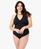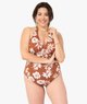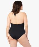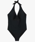 Inspiration vintage pour ce maillot de bain une pièce à haut triangle et nœud foulard ! Le maillot de bain femme grande taille (de la taille 44 à la taille 52) mettra votre décolleté en valeur avec ses bonnets dotés de coussinets amovibles. Pour votre confort, le maillot est entièrement doublé. Grand décolleté dos. Liens à nouer dans le cou.