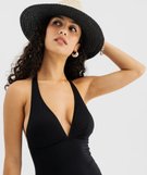 Maillot de bain femme une pièce à nouer dans le cou noir