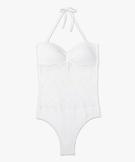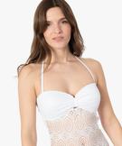 Maillot de bain femme une pièce en maille ajourée blanc