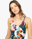 Maillot de bain femme une pièce multicolore avec ceinture jaune chine