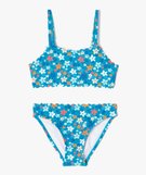 Maillot de bain fille 2 pièces à motifs fleuris avec finitions dentelées bleu