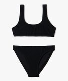 Maillot de bain fille 2 pièces en maille gaufrée noir