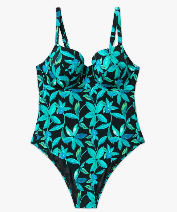Maillot de bain une pièce emboitant à motifs fleuris femme noir