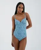 Ce maillot de bain une pièce imprimé allie élégance et confort pour une allure résolument féminine. Sa maille gaufrée texturée apporte du relief et met subtilement en valeur la silhouette. L’imprimé tendance ajoute une note fraîche et estivale idéale pour la plage comme pour la piscine. Ce maillot de bain femme, doté d’armatures et de bonnets paddés, subtilement froncés, assure un bon maintien tout en épousant harmonieusement les formes. Il se ferme à l’aide d’une boucle clipsable dans le dos et une large ouverture dans le bas du dos Facile à porter, il convient à toutes les morphologies. Un modèle chic et pratique pour profiter pleinement de l’été.