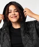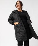 Avec ce manteau femme, arborez un look casual authentique ! Léger, fonctionnel, il réchauffe vos robes avec une touche de décontraction pour entrer doucement dans l'hiver. Sa coupe droite, simple, est structurée par des pans arrondis dans le bas, de grandes poches plaquées et un motif losange pour son matelassage. Le manteau long est équipé d'une capuche ajustable par cordon coulissant. Il se ferme à l'aide d'un zip sous patte pressionnée.