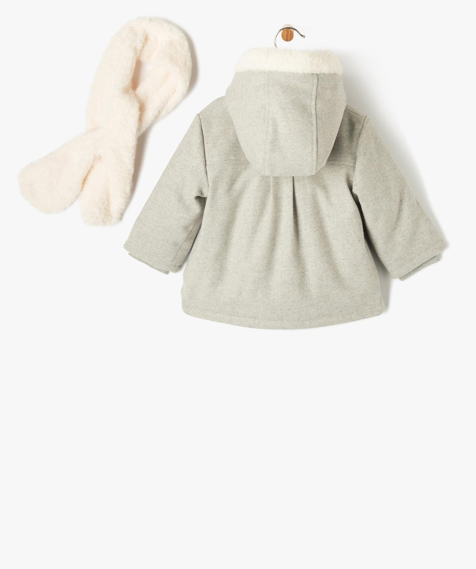 Manteau à capuche doublé peluche avec écharpe bébé fille gris clair