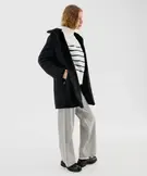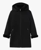 Un très joli manteau pour femme confectionné dans une maille fantaisie à glisser sans attendre dans le vestiaire. Il est doté d’un col montant et d’une capuche, entièrement doublés de maille ultra douce. On retrouve également des empiècements en sur le bord intérieur de la fermeture zippée et sur la face interne des poignets qui devient apparente lorsqu’on les porte avec un revers. Ce manteau à capuche possède un intérieur matelassé chaud et confortable. Deux poches zippées sur l’avant.
