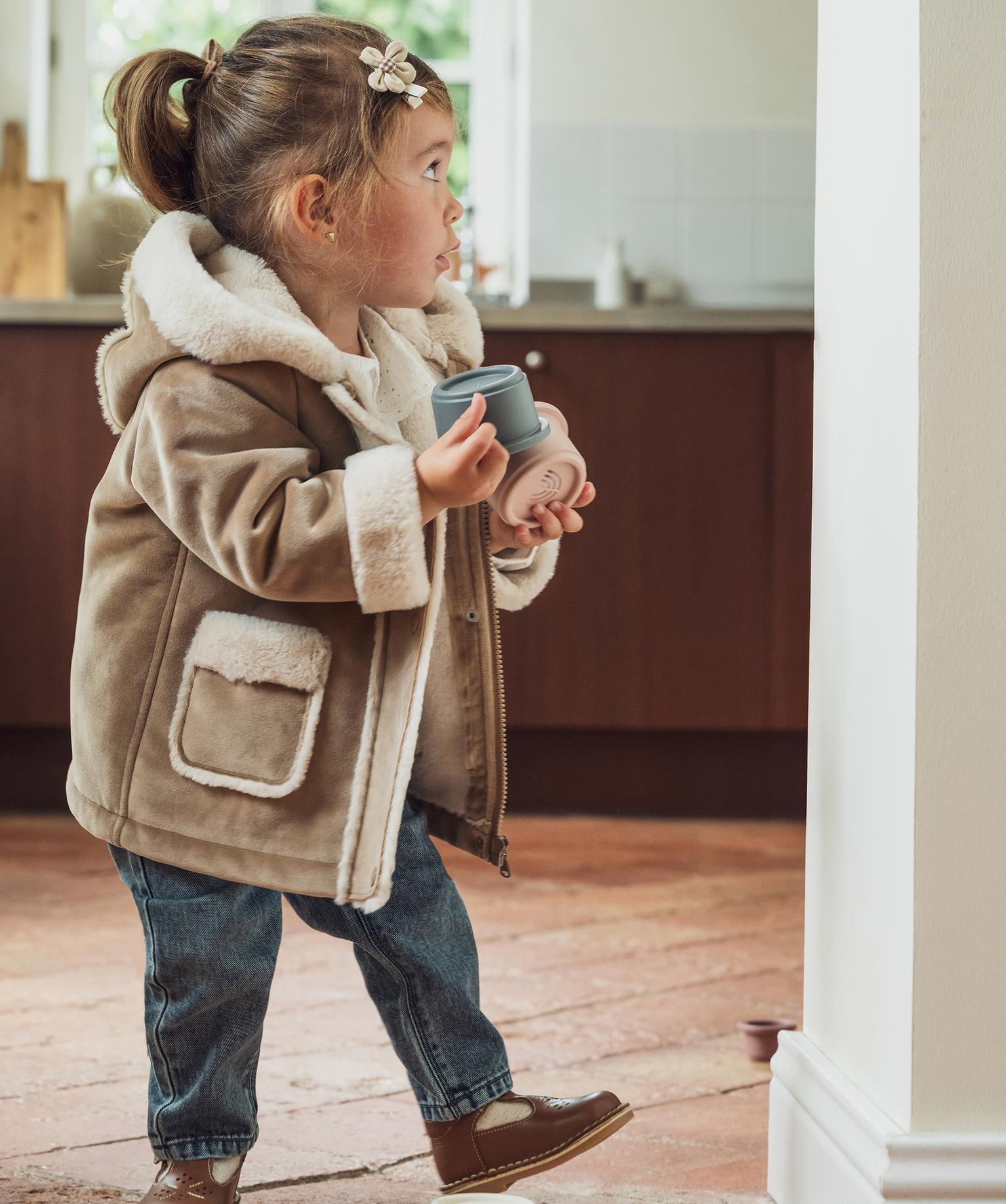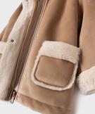 Manteau à capuche en velours doublure chaude bébé fille beige
