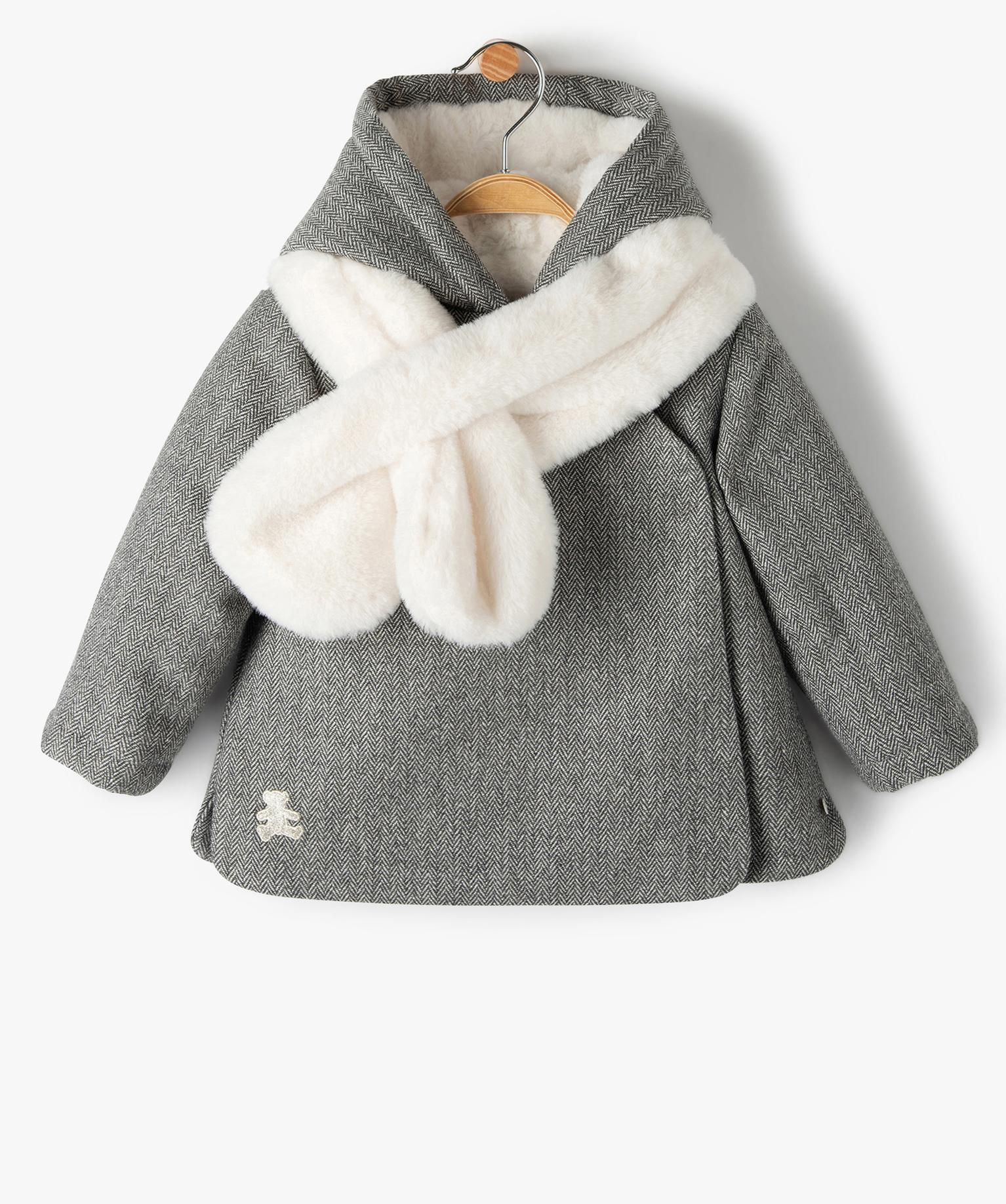 Manteau bébé fille avec écharpe douce - LuluCastagnette gris clair