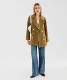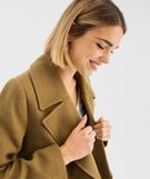Manteau caban en laine à double boutonnage doré femme kaki