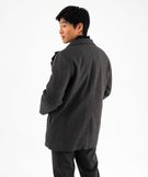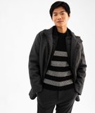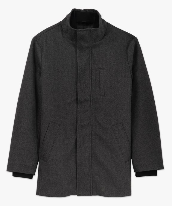 Manteau court à motifs chevrons avec col en bord-côte amovible homme gris