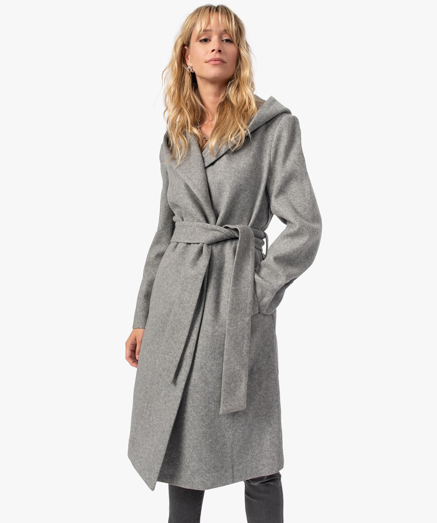 Craquez pour ce très joli manteau pour femme confectionné dans une matière douce aspect drap de laine. Un manteau à capuche avec grand col, qui se ferme par deux boutons pression. Vous apprécierez sa coupe droite qui lui assure une allure très élégante, et sa ceinture ton sur ton qui permet de souligner la taille. Il possède deux poches raglan sur les côtés. Un manteau qui accompagnera de nombreuses tenues, à porter avec une jolie écharpe colorée. Fente au dos.