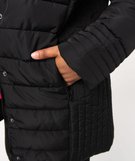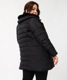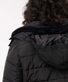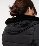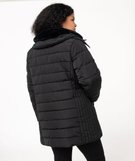 Ce manteau matelassé sera parfait pour vous protéger contre le froid cette saison. Un manteau femme grande taille (du 48 au 56) parfaitement confortable. Il possède un col montant avec une doublure en matière synthétique fourrure imitation ultra douce. Sur l’arrière du col une fine capuche enroulée est dissimulée sous un zip. Ce col se ferme par une large patte pressionnée. Ce manteau à col montant possède des manchons élastiqués au niveau des poignets et une fermeture zippée. Un manteau court qui se ferme par zip sous patte pressionnée. Il possède de jolies finitions : biais au niveau du col et de la patte de fermeture et biais passepoilé autour des zips.