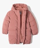 Manteau fille matelassé à capuche avec doublure peluche rose