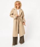 Manteau long aspect drap de laine femme camel