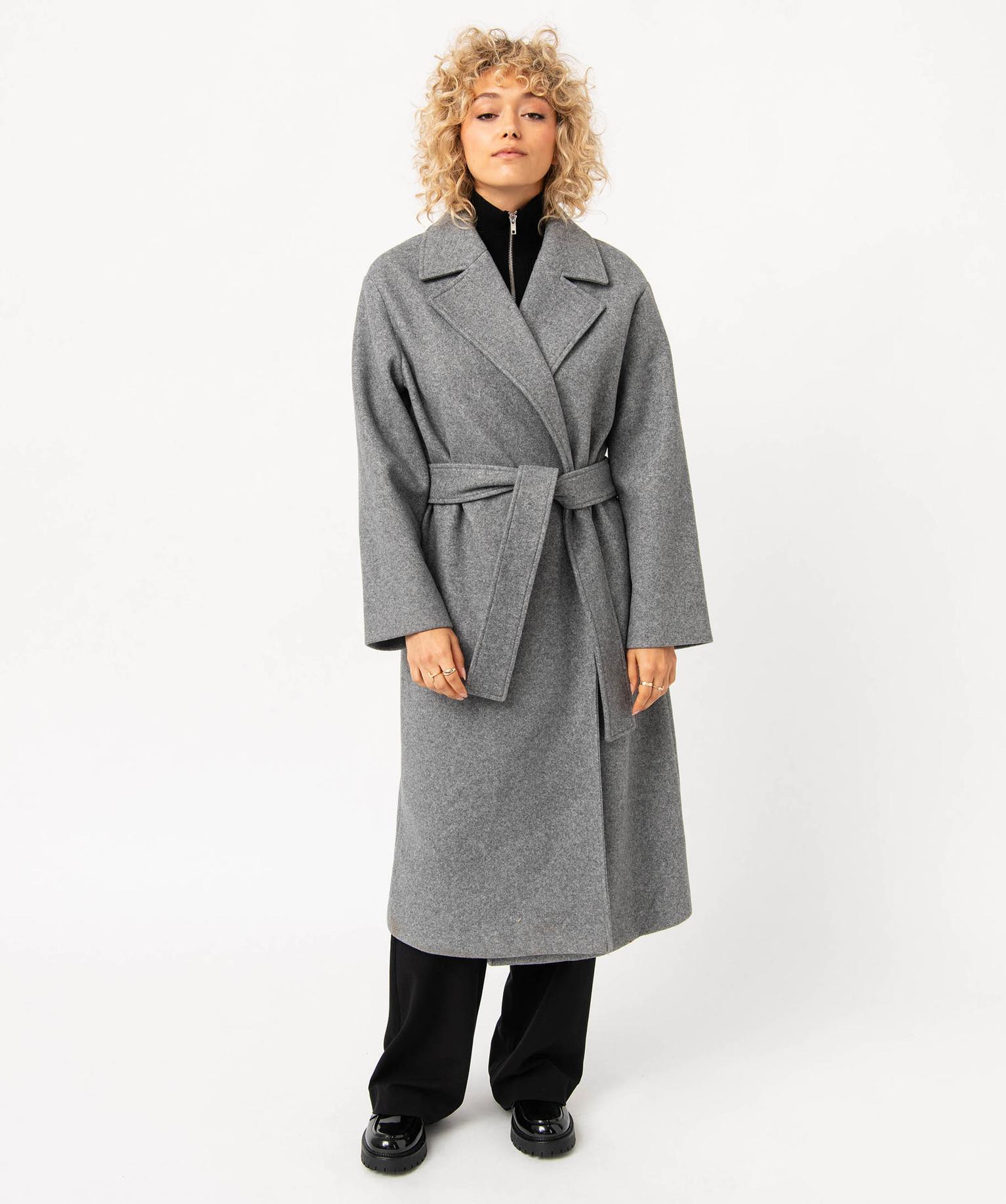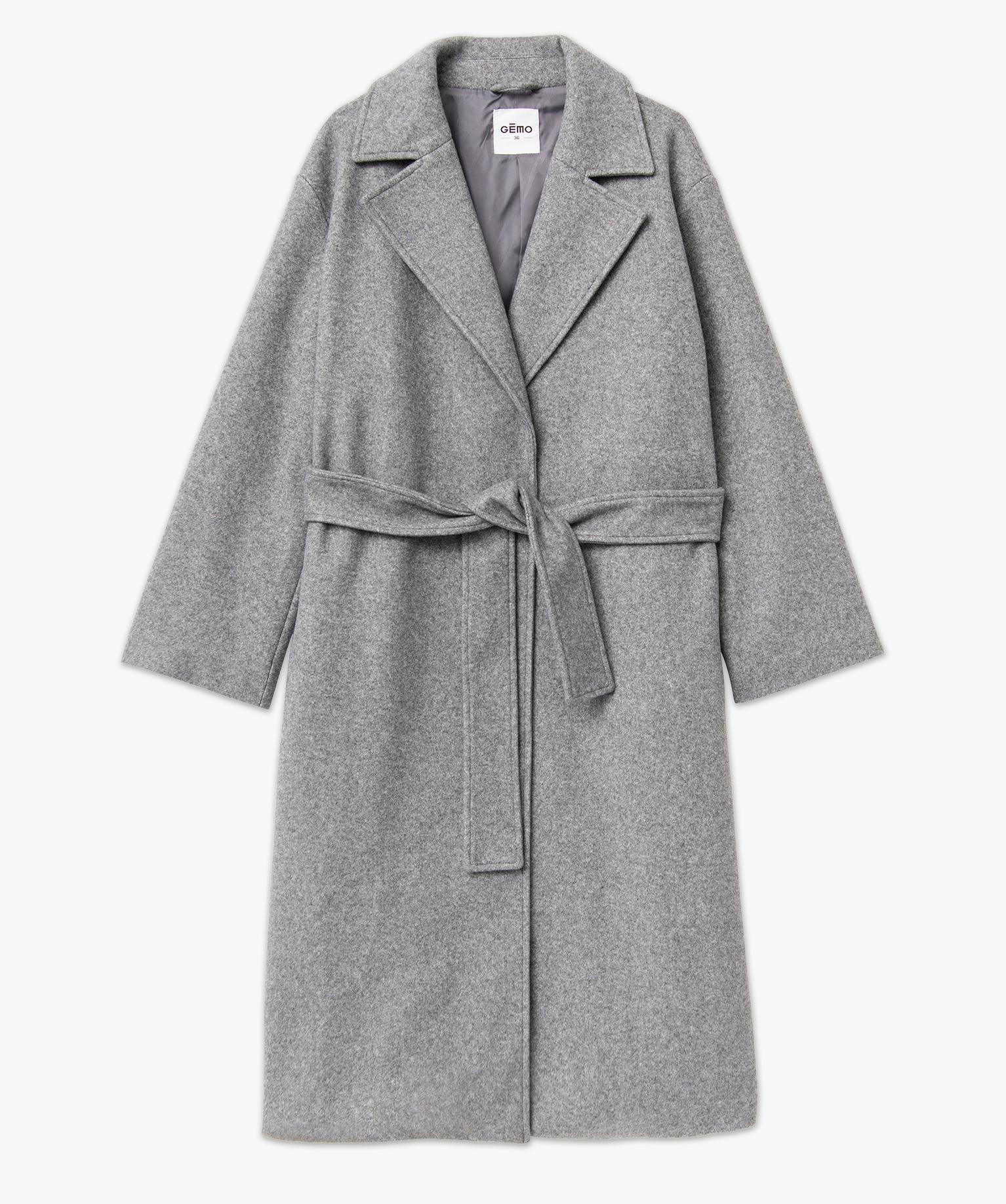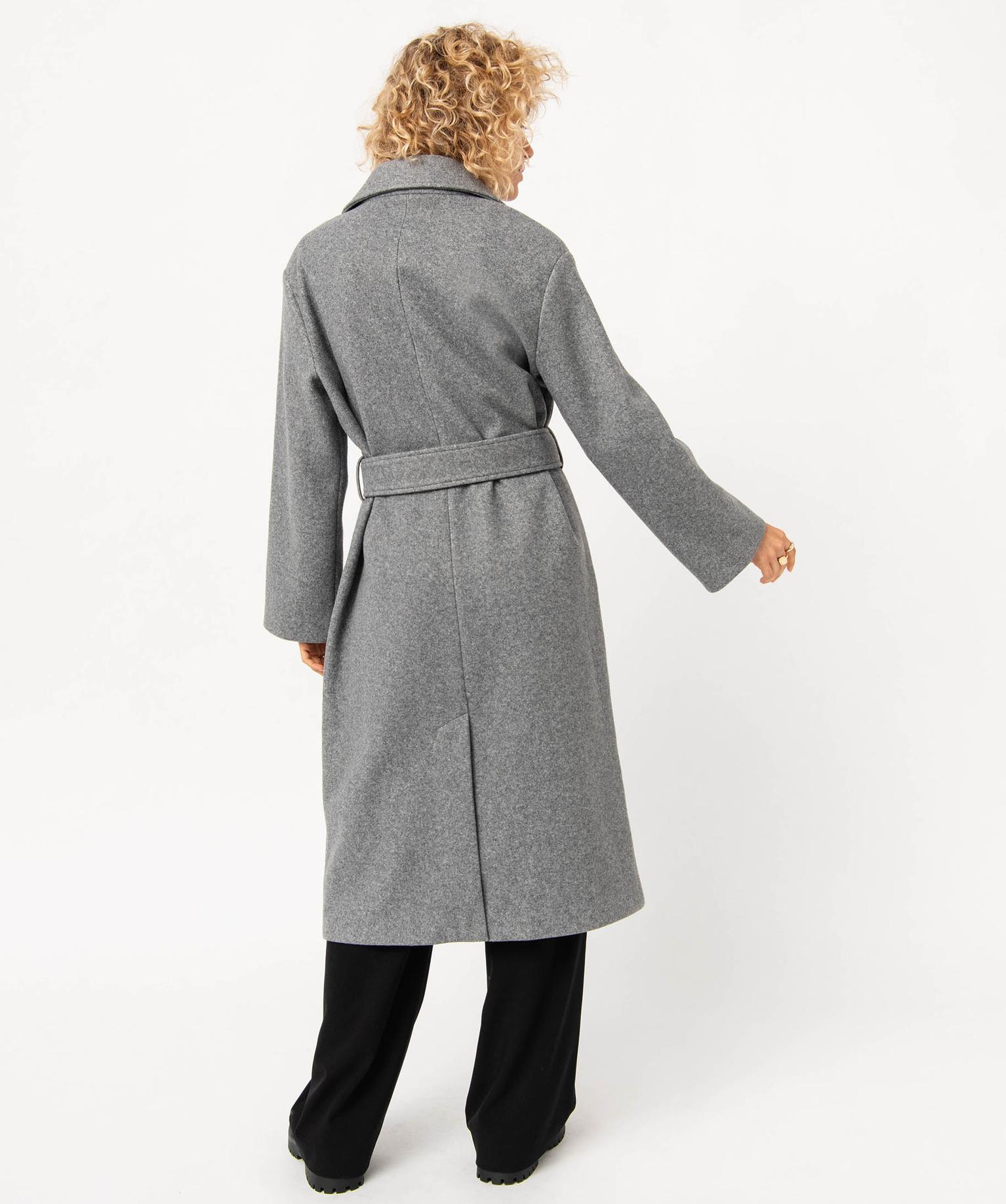 Manteau long aspect drap de laine femme gris