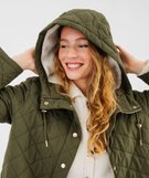 Un matelassage léger au motif géométrique authentique, une capuche doublée de fourrure imitation, des détails en métal doré : ce manteau femme ne laisse pas indifférent. Il donnera à vos looks casual une touche de chic certaine. Le manteau mi-long accompagnera également vos robes courtes avec ce qu'il faut de décontraction. Un entre-deux parfait ! Fermeture zippée sous patte pressionnée. Capuche ajustable par cordon. 2 poches raglan pressionnées. Coupe droite. Base droite. Haut de dos doublé fourrure imitation.