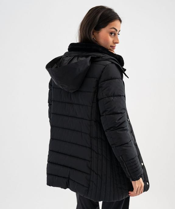Ce manteau femme allie chaleur, style et confort grâce à sa matière matelassée qui vous protégera des températures froides. Il présente un col montant doublé de maille peluche, offrant une sensation de douceur et ajoutant une touche de sophistication à votre tenue. Ce col est également doté d'un zip dissimulant une capuche fine. La coupe flatteuse de ce manteau met en valeur la silhouette, tandis que la matière matelassée assure une isolation thermique optimale. Cette doudoune longue possède un empiècement fermé par boutons pression sur l’avant du col et des manchons élastiqués dissimulés à l’intérieur des poignets. Cette parka femme se ferme par zip sous patte pressionnée. Elle s'adapte à différents styles, et se porte avec des tenues décontractées ou plus habillées. Deux poches zippées.