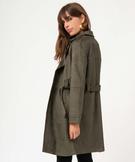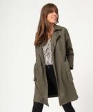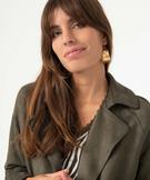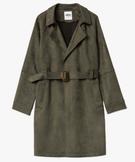 Un manteau en suédine souple et confortable, inspiré de l’imperméable avec son grand col et sa ceinture à nouer. Un manteau pour femme non doublé, parfait pour réchauffer les tenues de l’intersaison. Il possède des emmanchures raglan pour plus de confort, des surpiqûres fantaisie sur les manches et deux poches raglan. Un trench en suédine à porter ouvert ou ceinturé pour un look plus chic. Ceinture à boucle en résine.