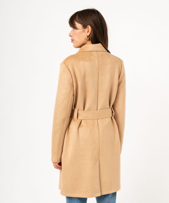 Découvrez un manteau en suédine à la texture souple et douce, qui emprunte les codes de l’intemporel imperméable. Ce manteau pour femme se distingue par son absence de boutons et se porte ouvert ou fermé avec la ceinture nouée. Ce trench non doublé offre un tomber impeccable et s’affiche comme la pièce idéale pour apporter une touche de chaleur aux tenues de mi-saison. Porté en version décontractée ou sophistiquée, il se plie à toutes vos envies. Bas fendu au dos. Deux poches raglan.