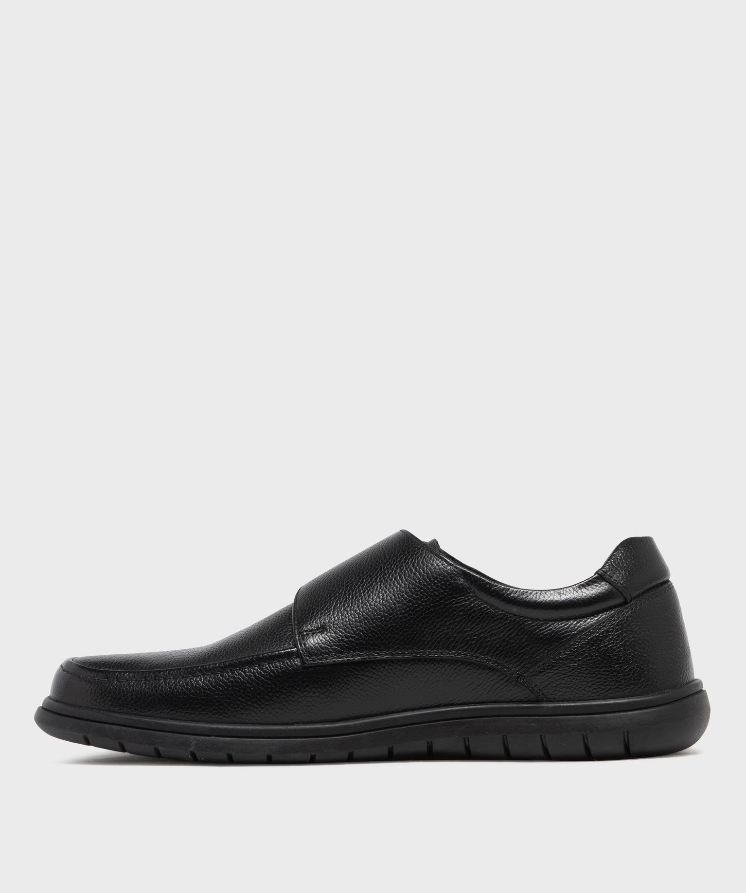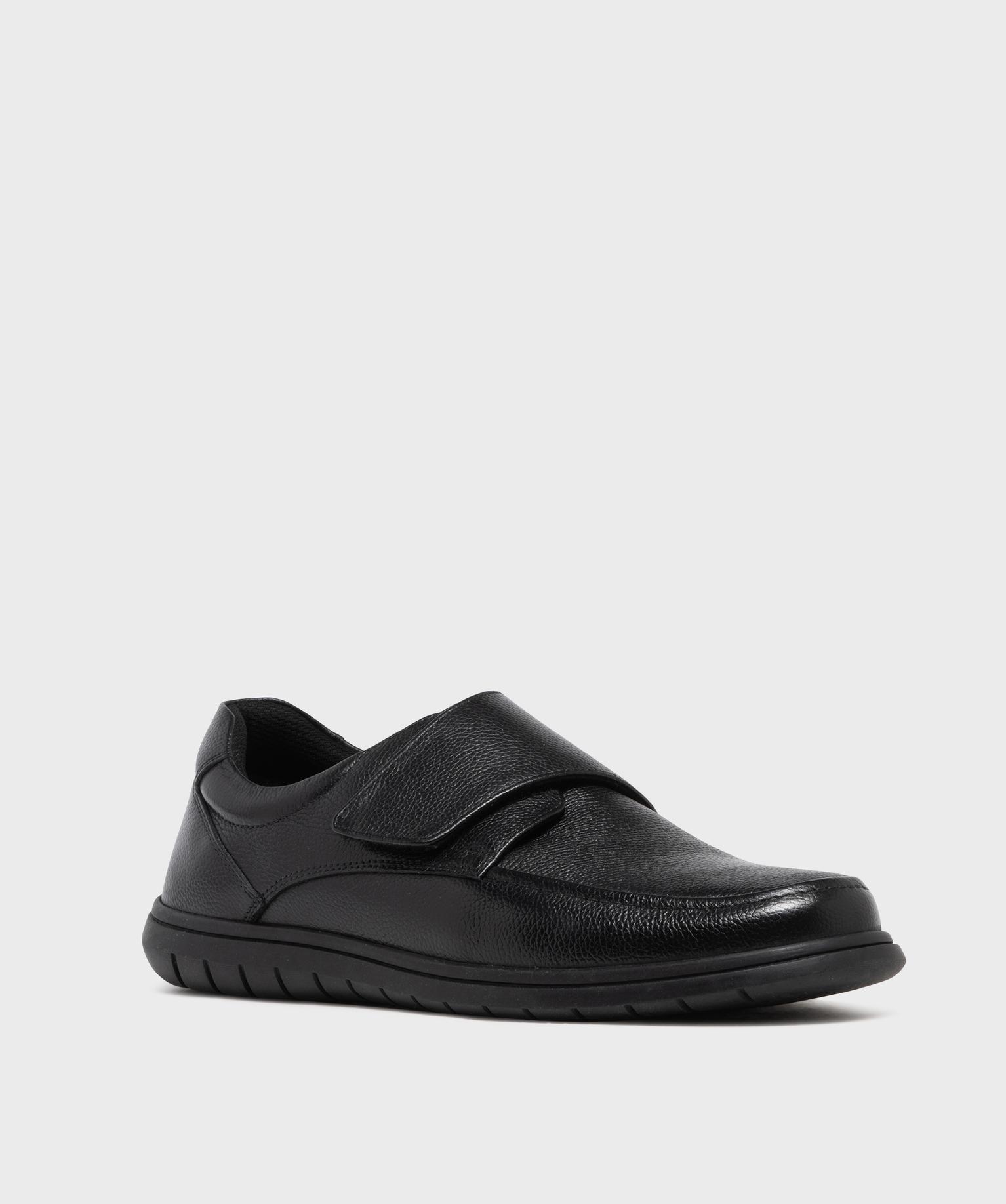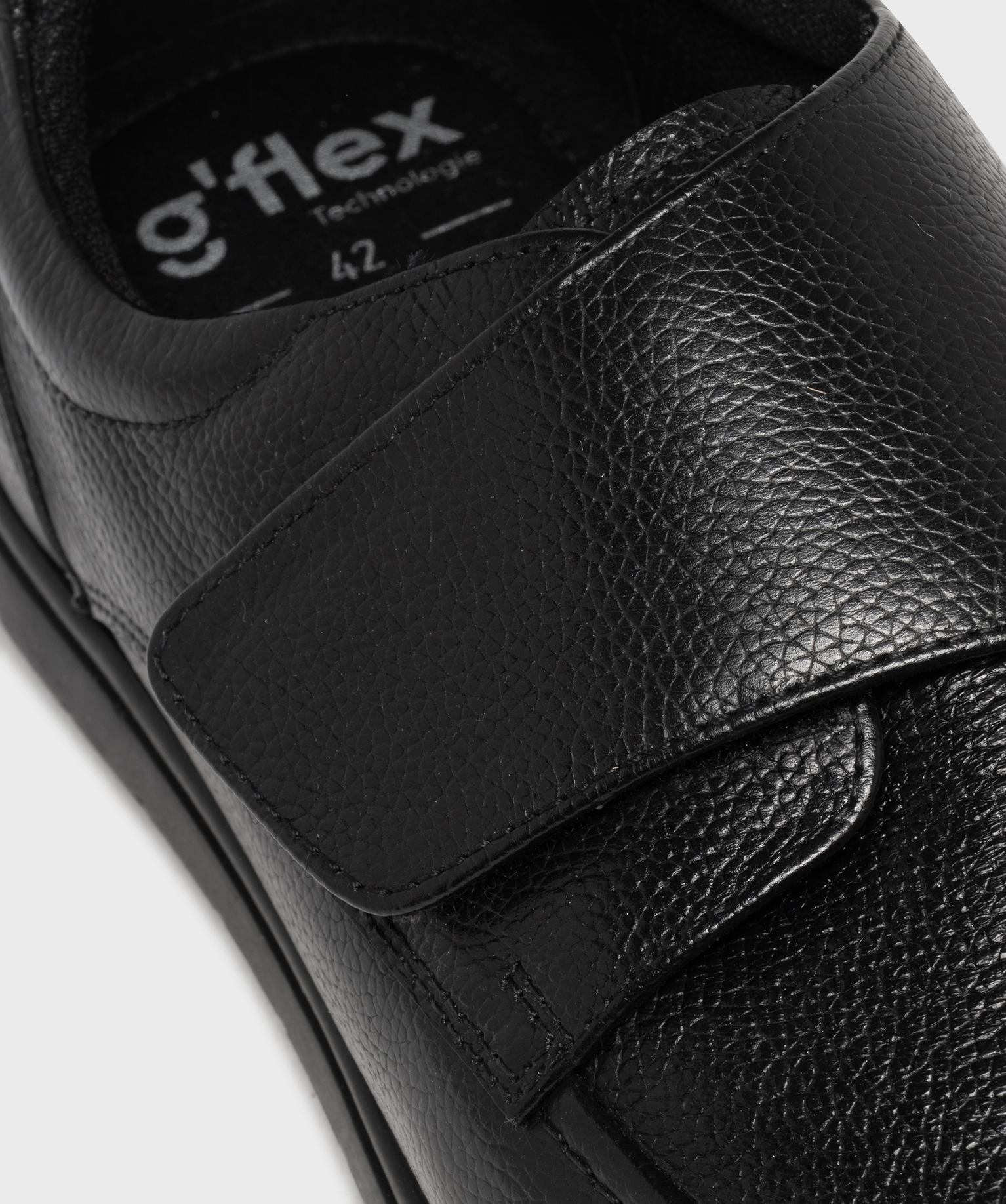 Mocassin confort dessus cuir fermeture scratch homme noir