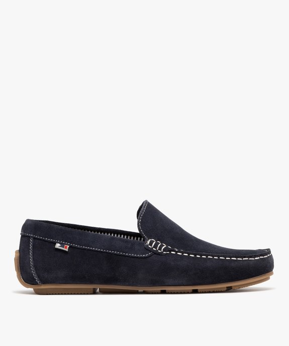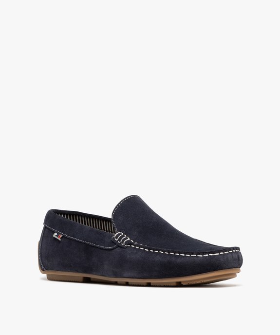 Mocassin dessus cuir velours semelle souple homme - Tanéo bleu fonce
