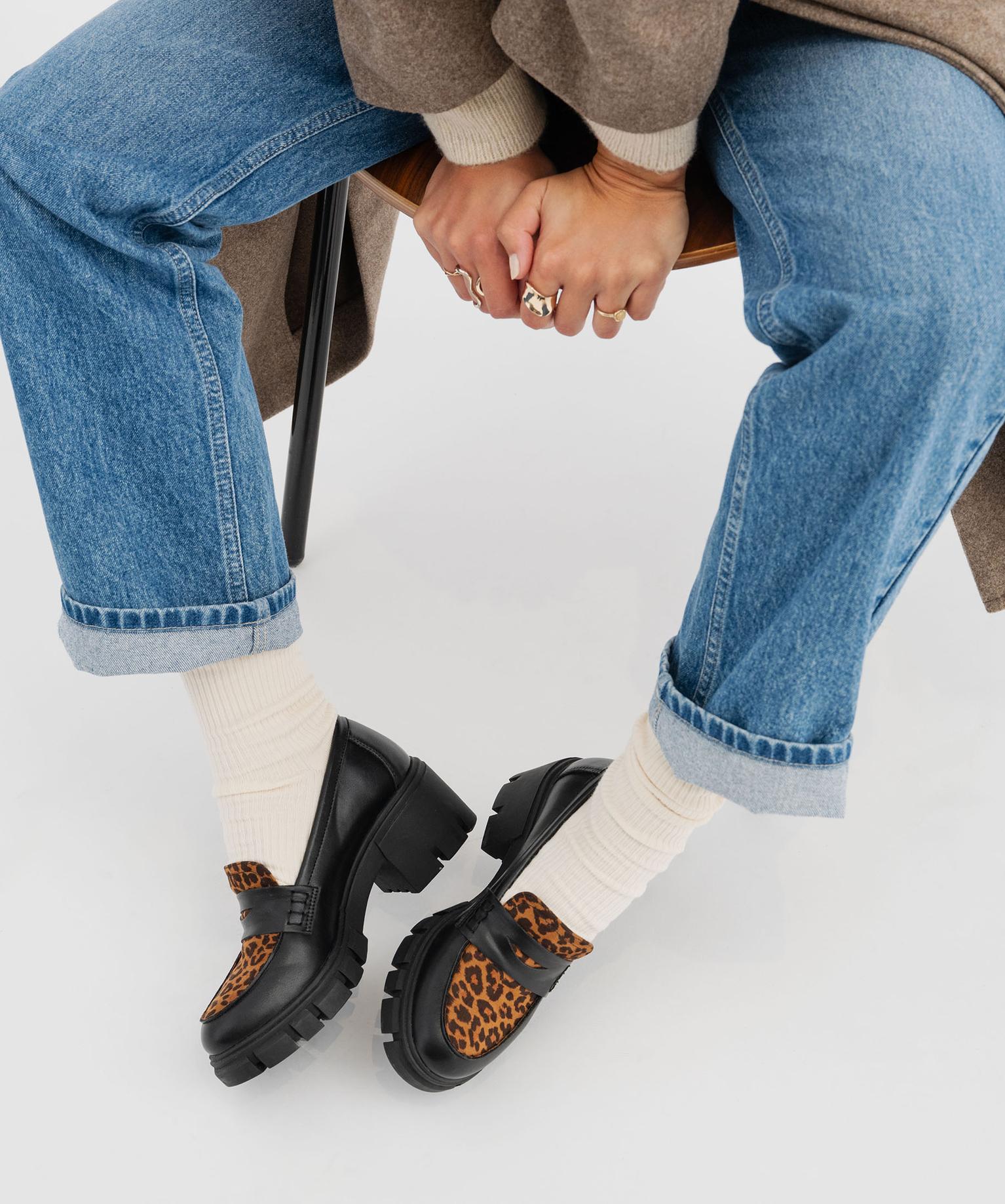 Mocassins avec dessus léopard et semelle crantée femme - 5 Miles noir