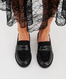 Ces mocassins femme allient raffinement et confort grâce à leur tige qui mixe cuir imitation lisse et textile texturé et pailleté. Faciles à enfiler, ces mocassins esprit couture sont parfaits pour adopter un look chic au quotidien. Le plateau cousu et la patte ajourée ajoutent une touche d'authenticité. Pour votre confort, les chaussures basses à bout amande sont dotées d'une semelle intérieure rembourrée.