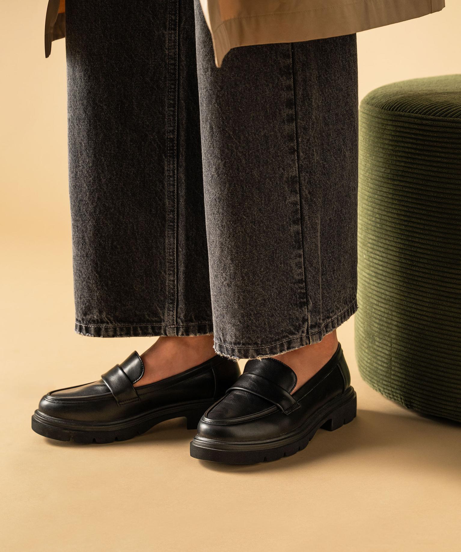 Mocassins chunky à épaisse semelle crantée et bout amande femme - 5 MILES noir
