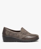 Mocassins confort bi-matières avec semelle compensée femme taupe