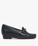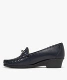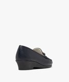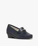 Mocassins confort dessus cuir et talon compensé femme[MISSING] bleu fonce