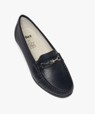 Des chaussures confort élégantes et féminines. Les mocassins en cuir (dessus et semelle intérieure) arborent une allure intemporelle avec couture en relief sur le plateau et bandeau surmonté d'un bijou métallique en forme de mors. Des mocassins confort posés sur une semelle souple et un talon de 4 cm permettant de prendre soin des pieds sensibles et de marcher sans fatiguer.