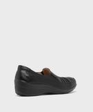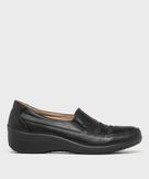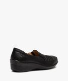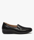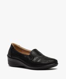 Des chaussures confort pour femme à la coupe classique mais aux détails travaillés : surpiqûres et plis sur le dessus, avec finitions discrètement pailletées pour une touche de féminité. Ces mocassins féminins et confortables et enveloppants possèdent des élastiques d’aisance de chaque côté de la languette. Un petit col rembourré et une semelle intérieure ultra moelleuse vous assureront un grand confort aux pieds tout au long de la journée. Le talon compensé de 4 cm est idéal pour une marche confortable et sans fatigue. Des chaussures de ville pour femme à porter avec jupe ou pantalon.