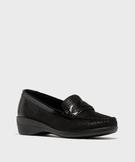 Restez à la pointe de la mode tout en prenant soin de vos pieds avec ces superbes mocassins de notre gamme confort ! Des mocassins femme flexibles, légers, avec un talon compensé de 3,5 cm pour atténuer la cambrure du dos et vous offrir un agréable confort de marche. Élégants, les mocassins confort présentent une tige souple avec de petits motifs géométriques subtilement brillants, des touches vernies au talon et sur le col, un plateau cousu rehaussé d'un bandeau verni avec feuilles en relief. Ils possèdent une semelle intérieure rembourrée et une doublure en suédine.