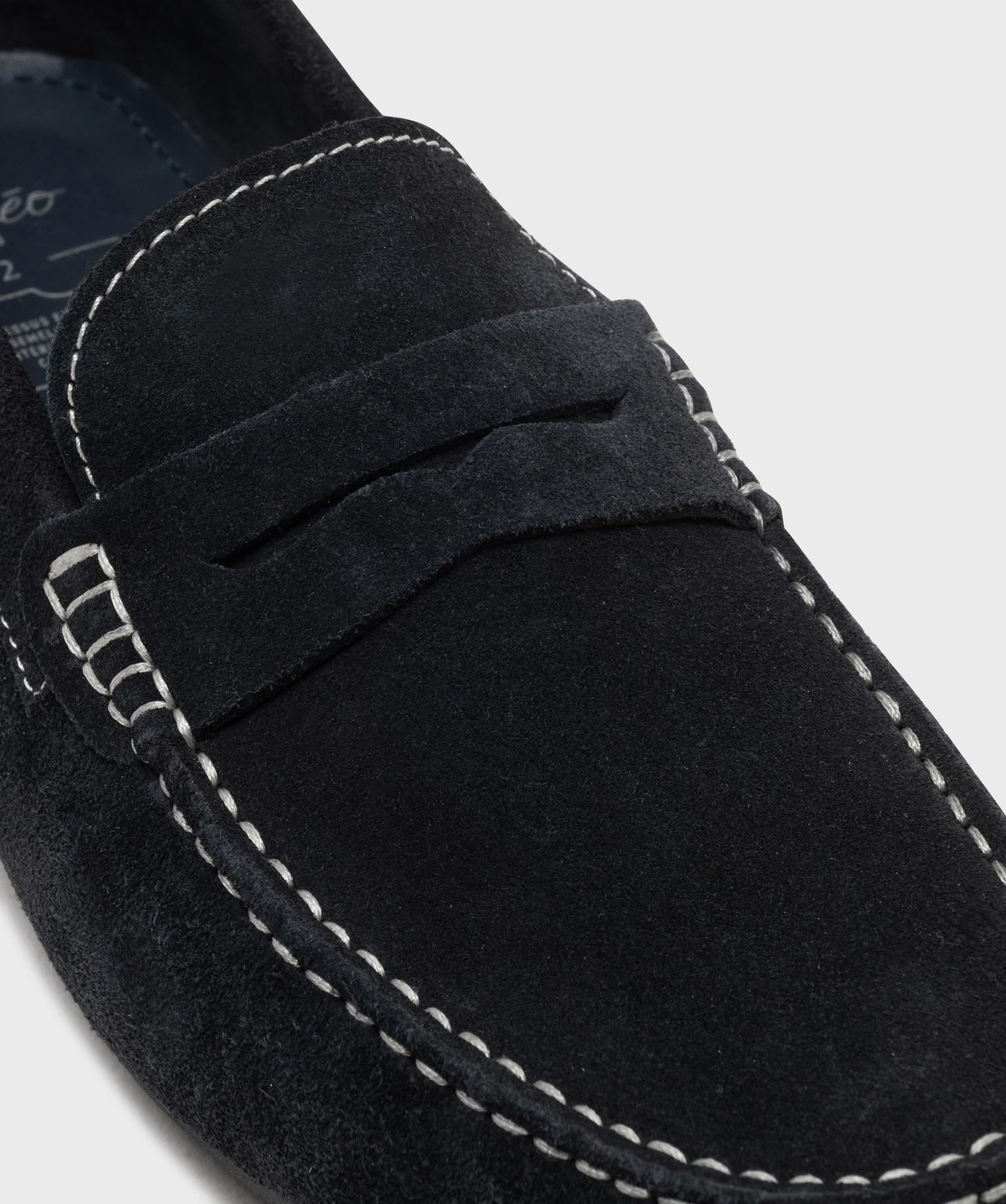 Mocassins dessus cuir velours homme -Tanéo bleu fonce