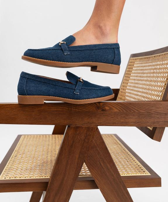 Les codes traditionnels du mocassin sont ici bouleversés grâce à une jolie toile denim. Des mocassins femme parfaits pour sublimer vos tenues chics avec une touche de décontraction. Leur ligne effilée et moderne épouse le pied avec délicatesse, tandis que la petite barrette en métal doré sur le dessus ajoute une touche de sophistication intemporelle. Ces mocassins à talon plat allient simplicité et style. Ils s’accordent aussi bien avec une jupe droite et un blazer pour un look professionnel, qu’avec un jean délavé et une chemise oversize pour une allure plus preppy.