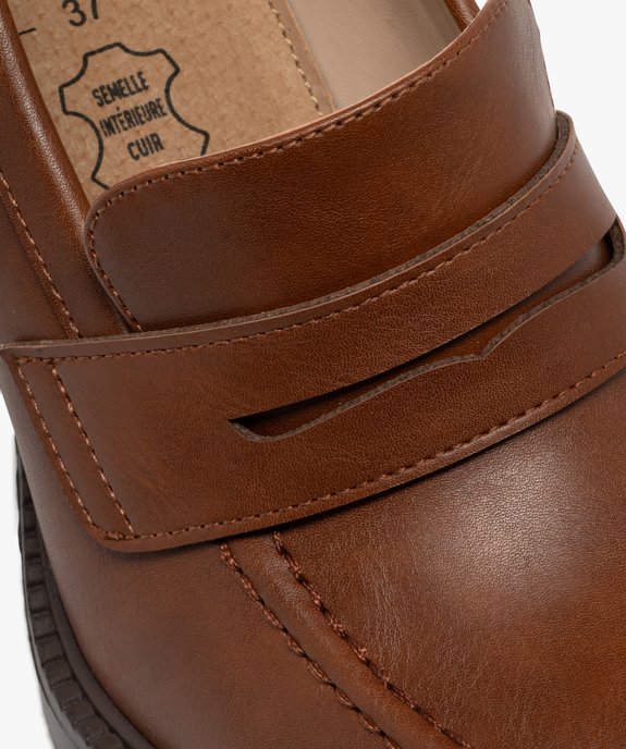 Mocassins femme à talon haut et plateforme Penny Loafer marron