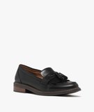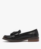 Incontournable, la paire de mocassins noirs est un must-have pour vos tenues casual. Avec une talonnette imitation bois, une frange et un noeud à l'avant du pied, ces mocassins pour femme ont tout du modèle classique. La semelle débordante laisse apparaître des surpiqûres contrastantes. De quoi habiller vos ensembles tailleurs, jean et robes ceinturées. Semelle intérieure moussée.