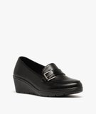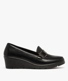 Mocassins femme confort à talon compensé et bride vernie fantaisie[MISSING] noir