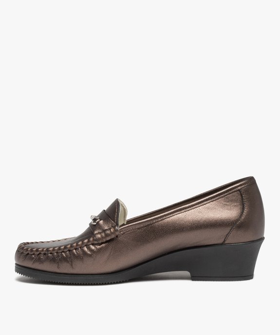 Mocassins femme à talon compensé en cuir et avec boucle fantaisie