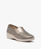 Mocassins femme confort unis métallisés et ajourés à semelle compensée marron clair