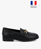 Mocassins femme dessus cuir uni avec chainette - Tanéo noir