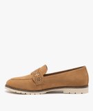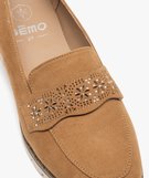 Mocassins femme unis à bride fantaisie ajourée marron