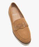 Avec une semelle crantée contrastante, ces mocassins pour femme allient classique et tendance avec soin. Une semelle intérieure moussée pour un maximum de confort, un dessus en suédine doux et agréable au toucher, vous adopterez ces chaussures plates avec bonheur. Le détail féminin et original : une bride fantaisie mêlant détails ajourés et brillants. Vous pouvez porter ces mocassins unis avec un jean ou un tailleur et un tee-shirt blanc.