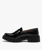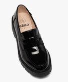 Mocassins femme unis avec dessus verni et semelle crantée noir