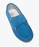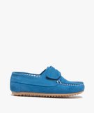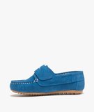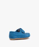 Mocassins garçon à scratch dessus cuir retourné uni bleu