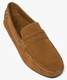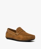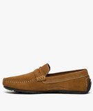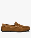 Mocassins homme dessus et intérieur cuir avec surpiqûres marron vif
