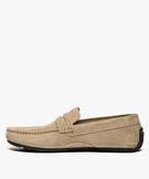 Mocassins homme dessus et intérieur cuir avec surpiqûres beige